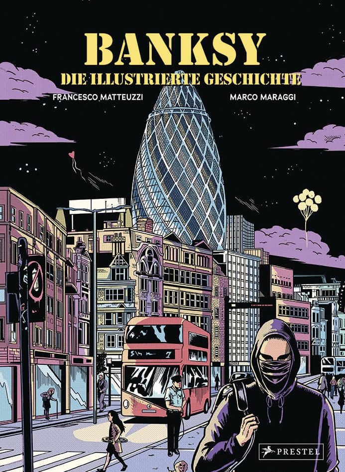 Die Protagonisten dieser im Comic-Stil illustrierten Geschichte, ein Mädchen und ein Junge, gehen dem Leben und Wirken von Banksy wie in einem Dokumentarfilm nach. Info: Francesco Matteuzzi: Banksy - Die illustrierte Geschichte, Verlag: Prestel, 128 Seiten zu 24.6 x 17.6 cm (gebunden), Preis: 18 Euro. Hier bestellen.