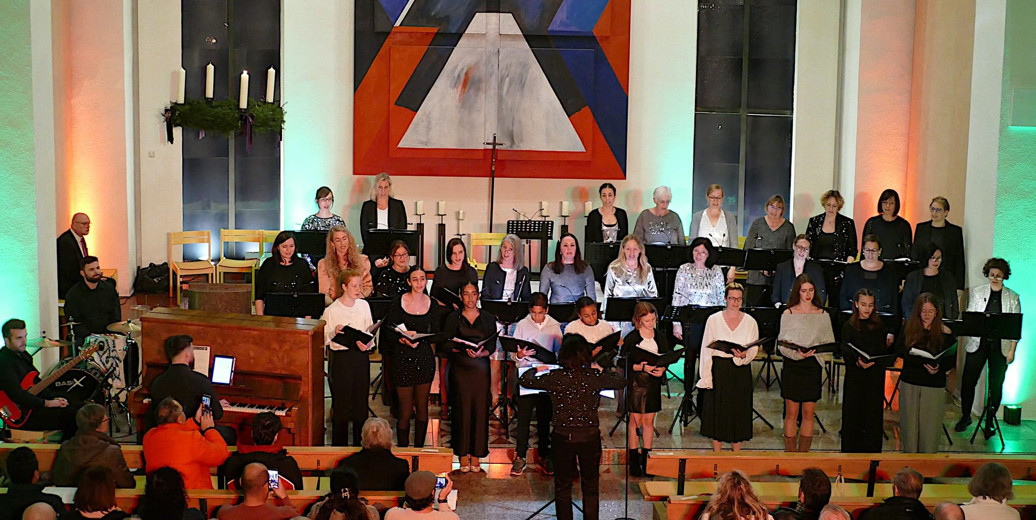 Da das Konzert am ersten Advent über die Bühne ging, sangen die „Glanztöne“ - also die jungen Frauen in glitzernder Robe - und die jüngeren „Phönixstimmen“ zuerst gemeinsam Adventslieder, nämlich „Carol of the Children“ und „Angel’s Carol“ von John Rutter. Das war ein voller Klang und machte Lust ...