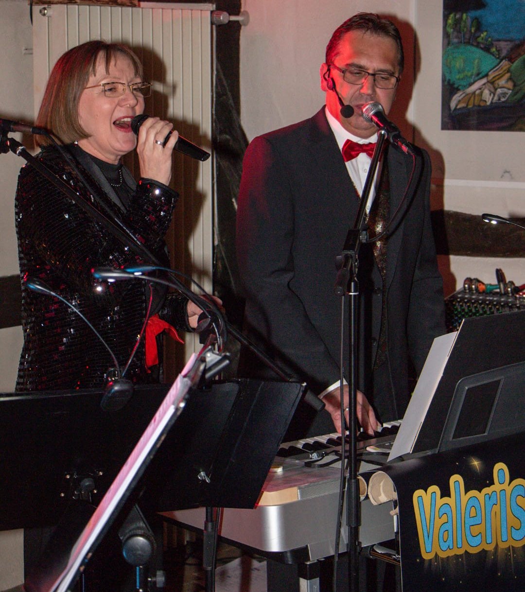 Das Duo „Valeris Music“ spielt im ersten Teil „Lieder Made in Germany“, und im zweiten Teil heißt es „Wünsch Dir was“: Das Publikum sucht Wunschtitel aus den verteilten Textbüchern zum Mitsingen aus.