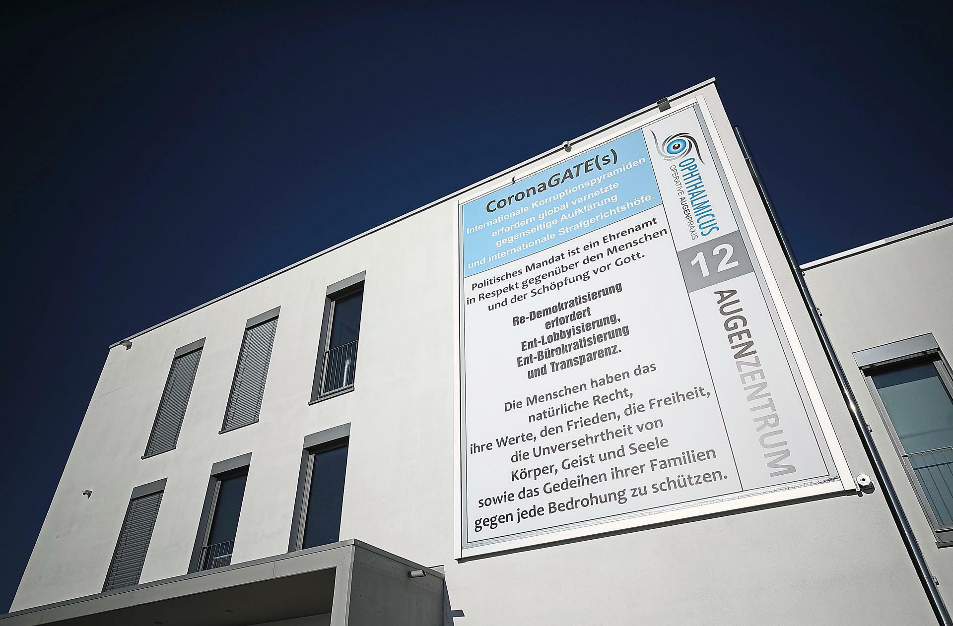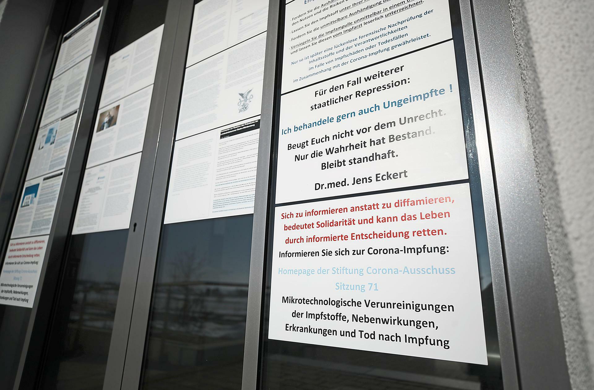 Schon im vergangenen Frühjahr sorgte ein riesiges Plakat an der Augenarztpraxis von Jens Eckert als Aufruf gegen eine angebliche Corona-Verschwörung für Wirbel. Die Haltung des Mediziners fällt jetzt auch bundesweit auf.