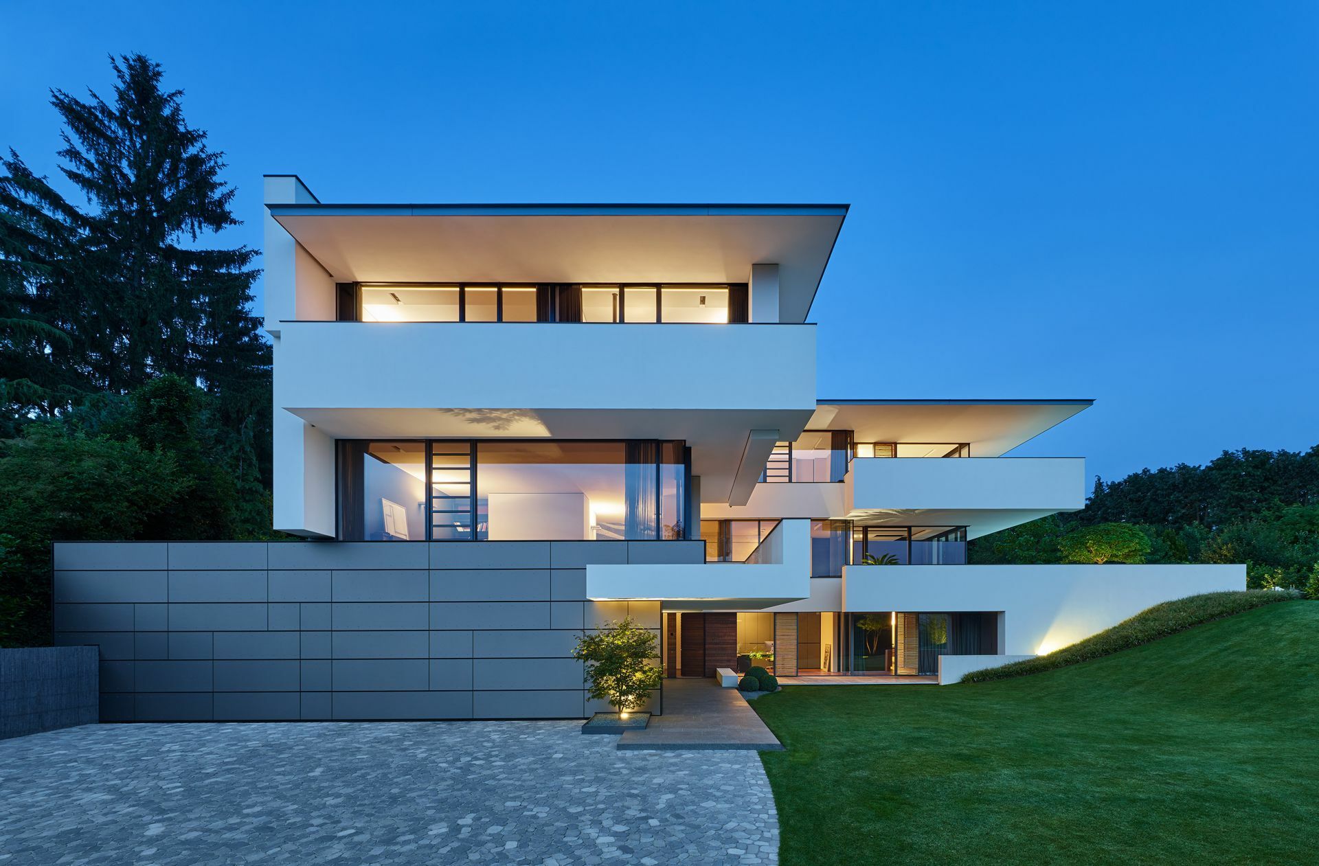 Das „Rottmann House“ aus dem Jahr 2015 ist in Wiesbaden in einem Wohnviertel oberhalb einer Burgruine gelegen, die Bewohner blicken auf bewaldete Hänge. Erwärmt wird das Haus mittels Geothermie, der Pool mit einer Luft-Wärmepumpe, eine Photovoltaikanlage liefert die nötige Elektrizität. Porenbetonaußenwände mit 50 bis 65 Zentimeter Stärke sind mit mineralischem Anstrich versehen.