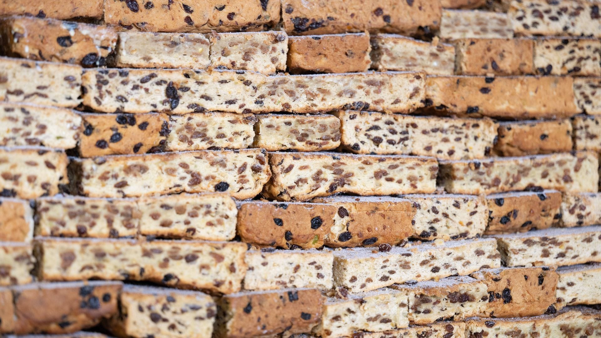 Dresden - Die Dresdner Stollenbäcker haben den XXL-Striezel für das diesjährige Stollenfest zusammengesetzt. Aus mehr als 3.300 Teilen und mit reichlich Butter, Zucker und Puderzucker entstand der Stollengigant. 35 Bäckerinnen und Bäcker sowie zahlreiche Helfer benötigten rund sieben Stunden, um das süße Backwerk zusammenzusetzen, wie der Schutzverband Dresdner Stollen mitteilte.
