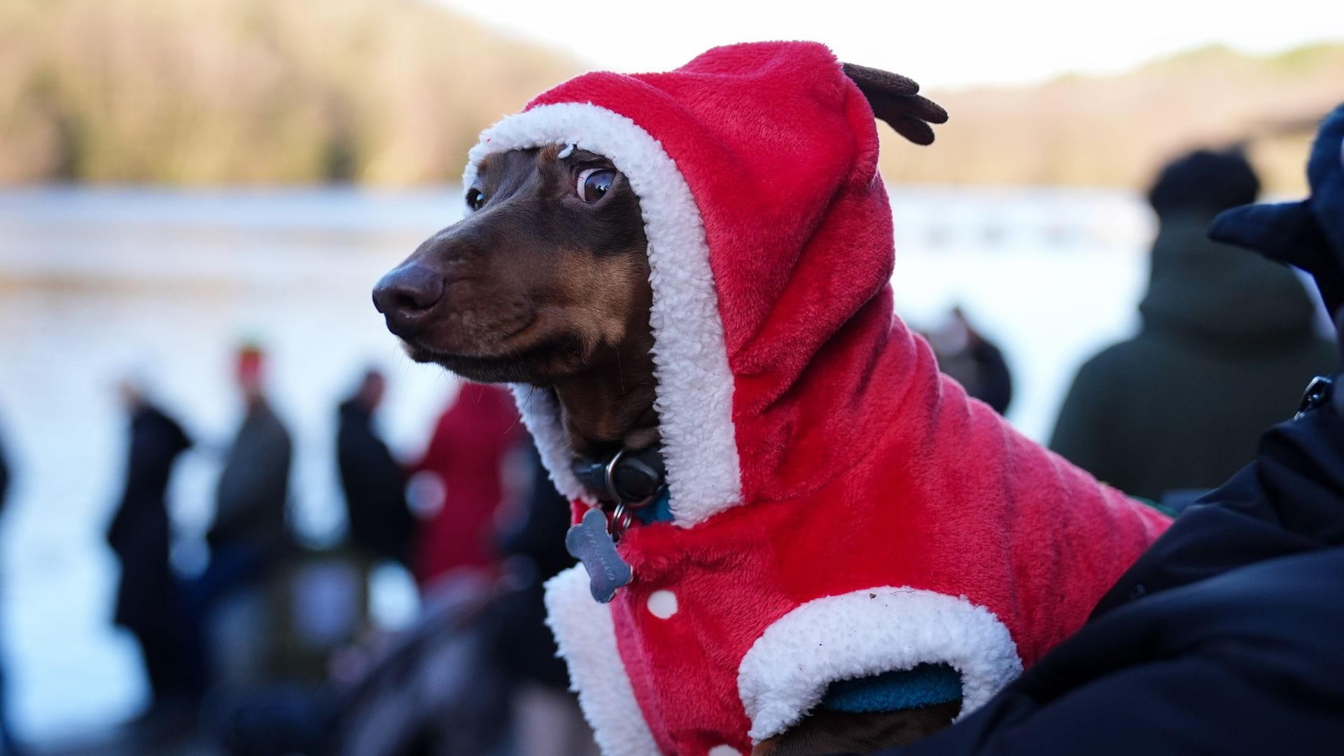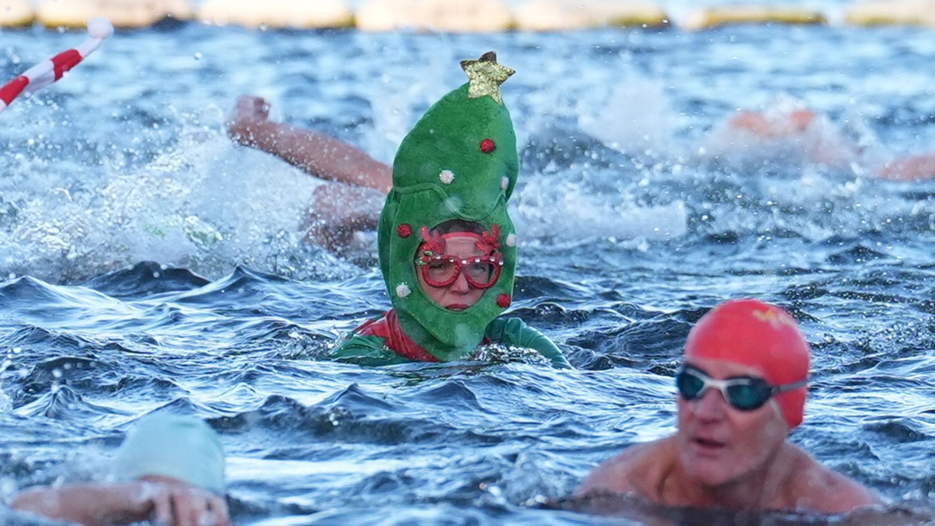 Dutzende steigen zum Weihnachtsschwimmen in den Orankesee