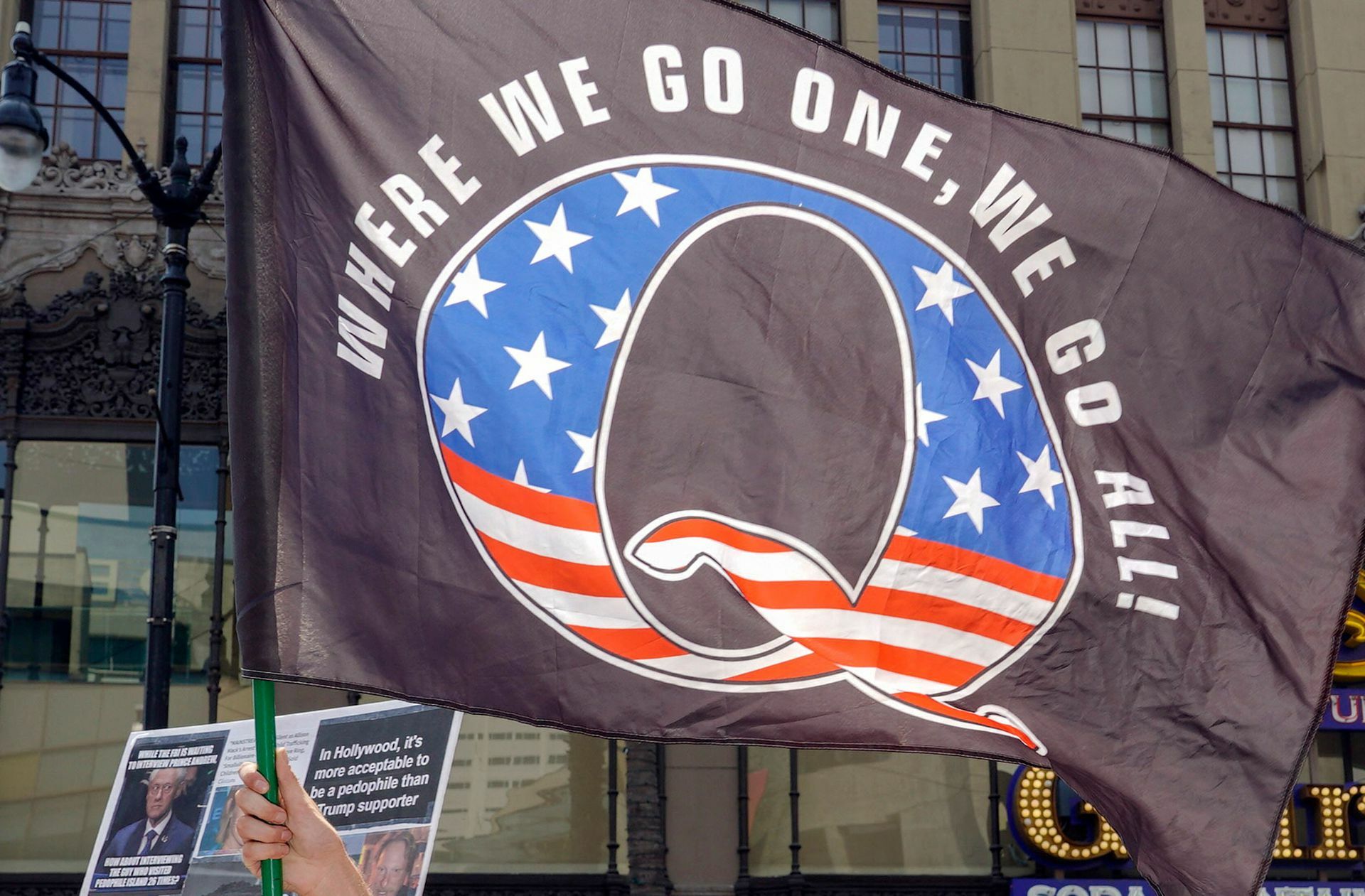 Eine Flagge der verschwörerischen QAnon-Bewegung, die in den USA ihren Ursprung hatte Foto: AFP/Kyle Grillot