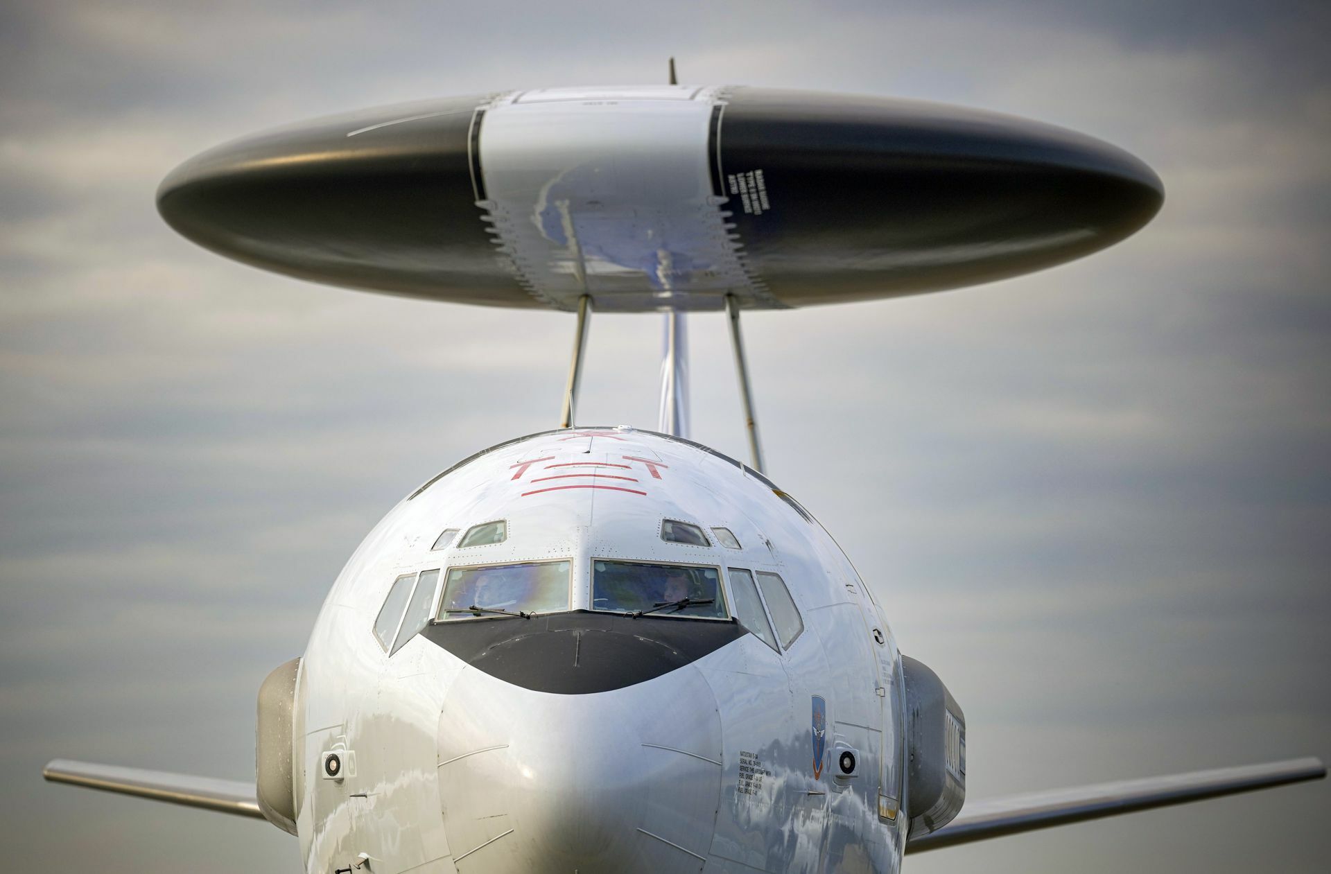 Kostentreiber Ukraine-Krieg: Ein Awacs-Aufklärungsflugzeug der Nato in Rumänien im Einsatz. Foto: Andreea Alexandru/AP/dpa..