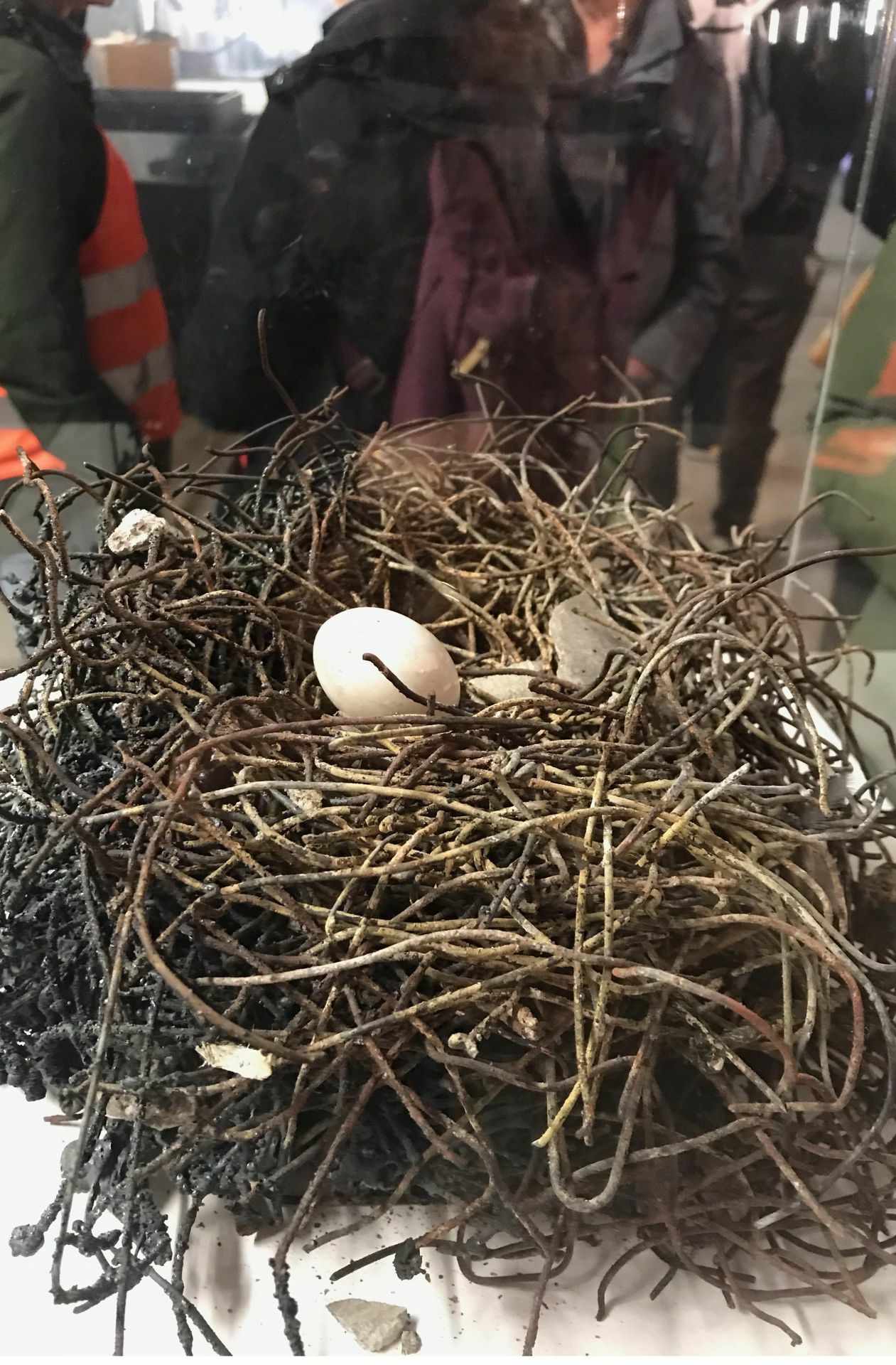 Vögel, die in den Tunnel ihre Nester bauen, verwenden Draht, Kabel und Schrauben dafür. Der Künstler Erik Sturm stellt die Nester wie Kunstwerke aus.