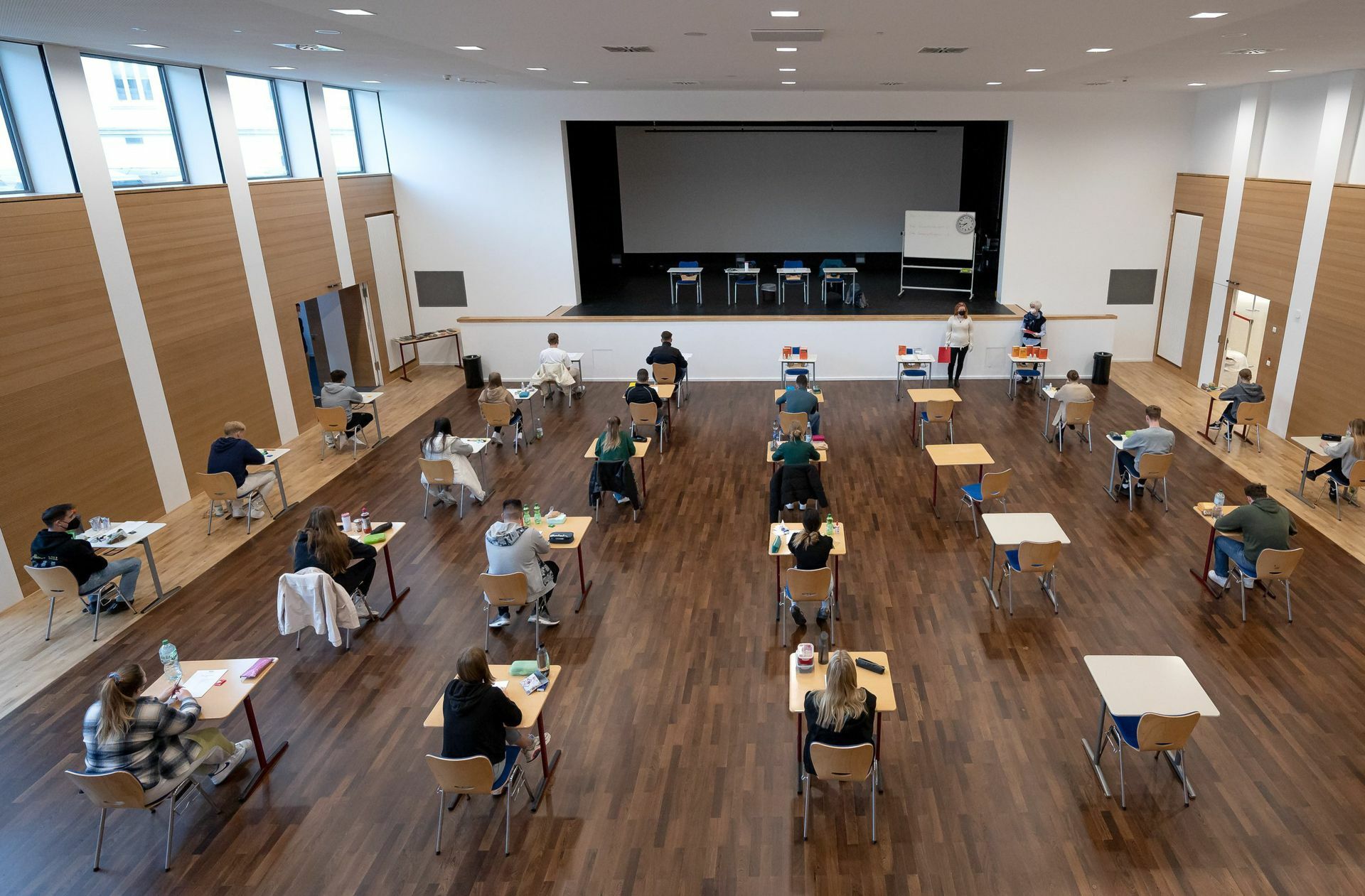 Abiturienten bei der Prüfung. Wie viele Jahre sie zur Vorbereitung brauchen, ist seit vielen Jahren Streitthema. Foto: dpa/Sina Schuldt