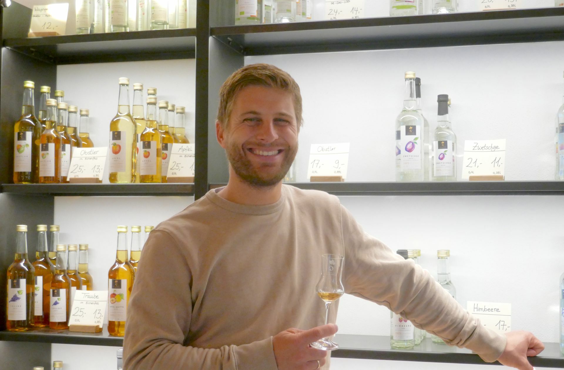 Das fertige Produkt präsentiert der Brenner im Glas: Quittenbrand