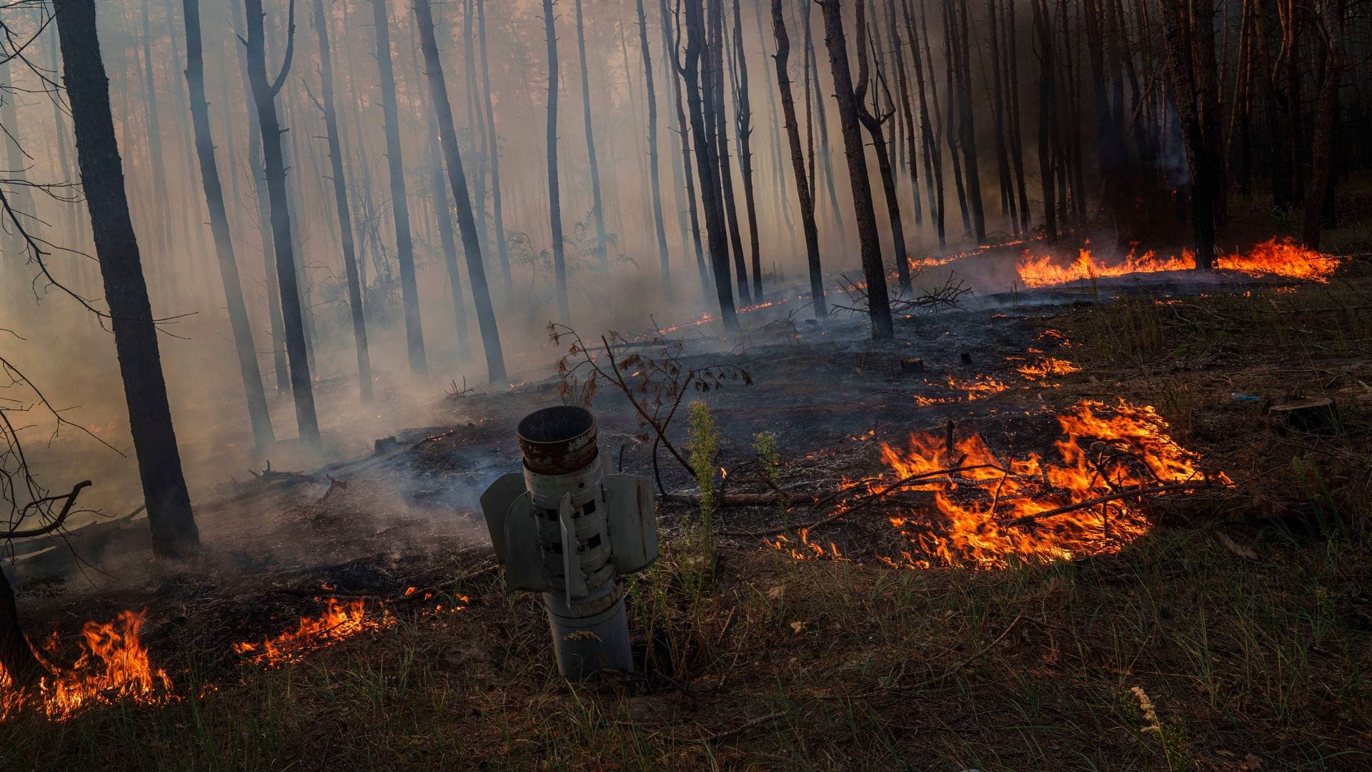 Waldbrände und Militärfahrzeuge setzen im Ukraine-Krieg enorme Mengen Treibhausgase frei. Die Ukraine fordert auch deswegen Dutzende Milliarden US-Dollar Schadenersatz von Russland.