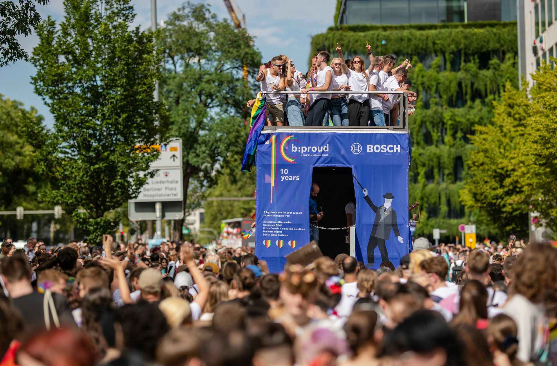 Bosch-Truck auf dem CSD in Stuttgart Foto: dpa/Christoph Schmidt