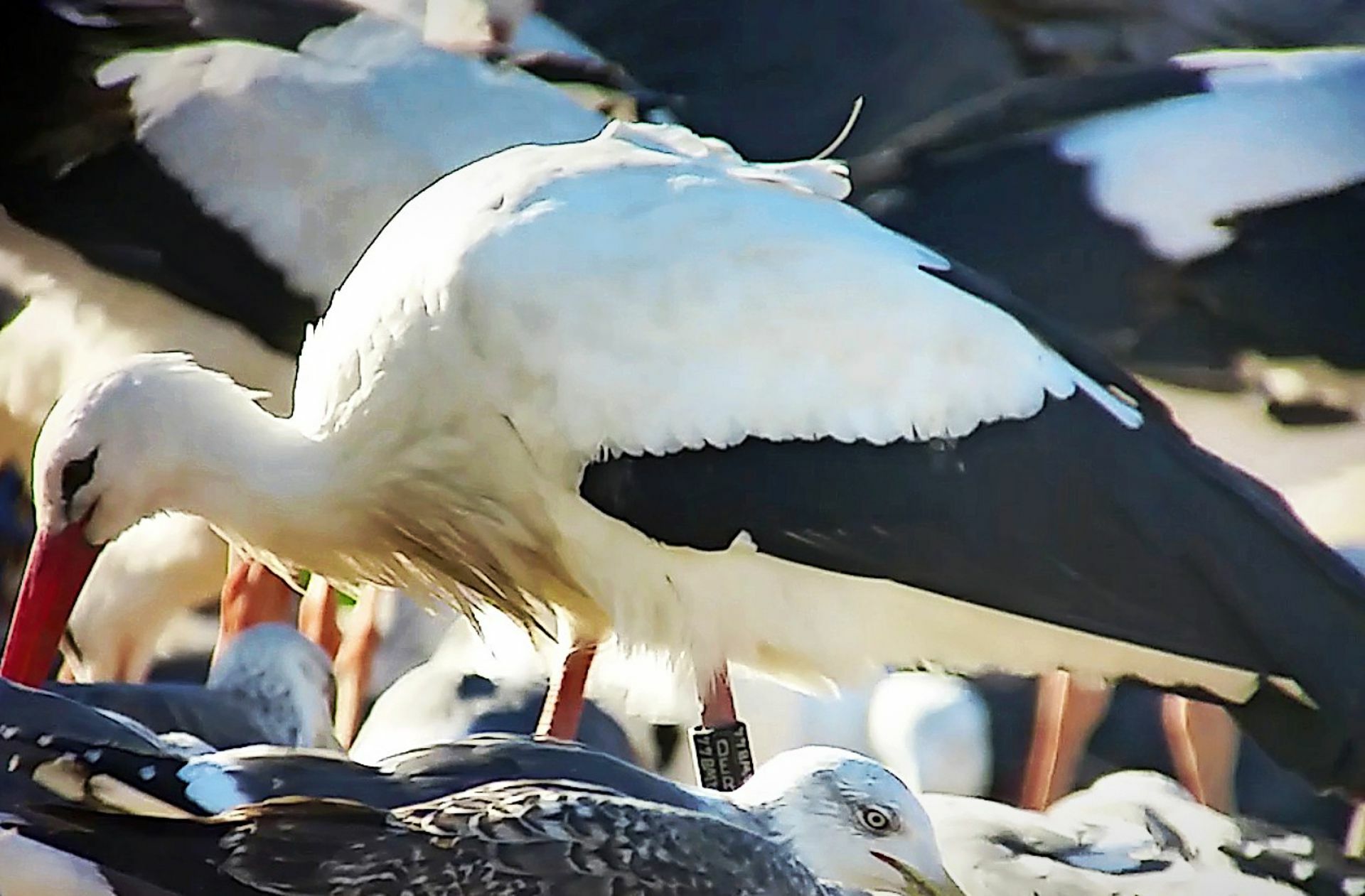 Die Störchin Libi auf dem Müllplatz el Pinto  bei Madrid. Dort hält sich die Störchin mit dem kleinen Sender am linken Bein auch derzeit auf. Die Senderstörchin Zozu hatte auf ihrer Spanienreise weniger Glück.