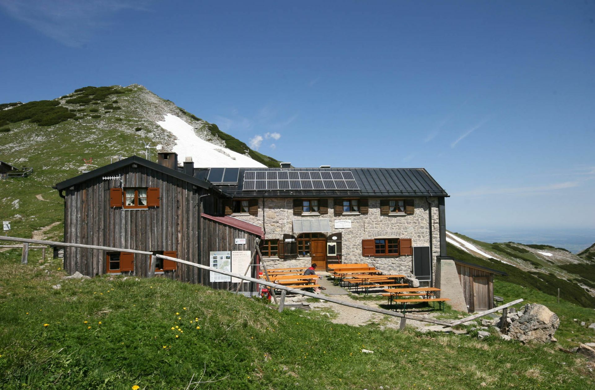 Das Freschenhaus: Katrin Schmid bewirtschaftet das Freschenhaus im Bregenzerwaldgebirge im ersten Jahr und bietet ihren veganen und vegetarischen Gästen gleich mehrere Gerichte abseits von Kaiserschmarrn und Co. an. Hüttencurry und Linsenbolognese stehen täglich auf der Speisekarte, genauso wie verschiedene Knödel mit Pilzen, roter Beete oder Spinat. In der Pfifferlingszeit soll es einen Pfifferlingsgulasch, im Herbst Kürbisgerichte geben. Auf dem Frühstücksbuffet wartet ein Tomaten-Basilikum Aufstrich, ein Linsenhummus und ein Kräuterquark, dazu Frühstücksflocken und ein Birchermüsli. Einmal in der Woche sammelt ein Fahrer im Tal südlich des Bodensees frische Produkte bei Erzeugern aus der Region ein und bringt sie über den Fahrweg hinauf zur Hütte. Von benachbarten Almen bezieht Schmid, die ihren Gästen viele Milchprodukte wie Quark und Käse.