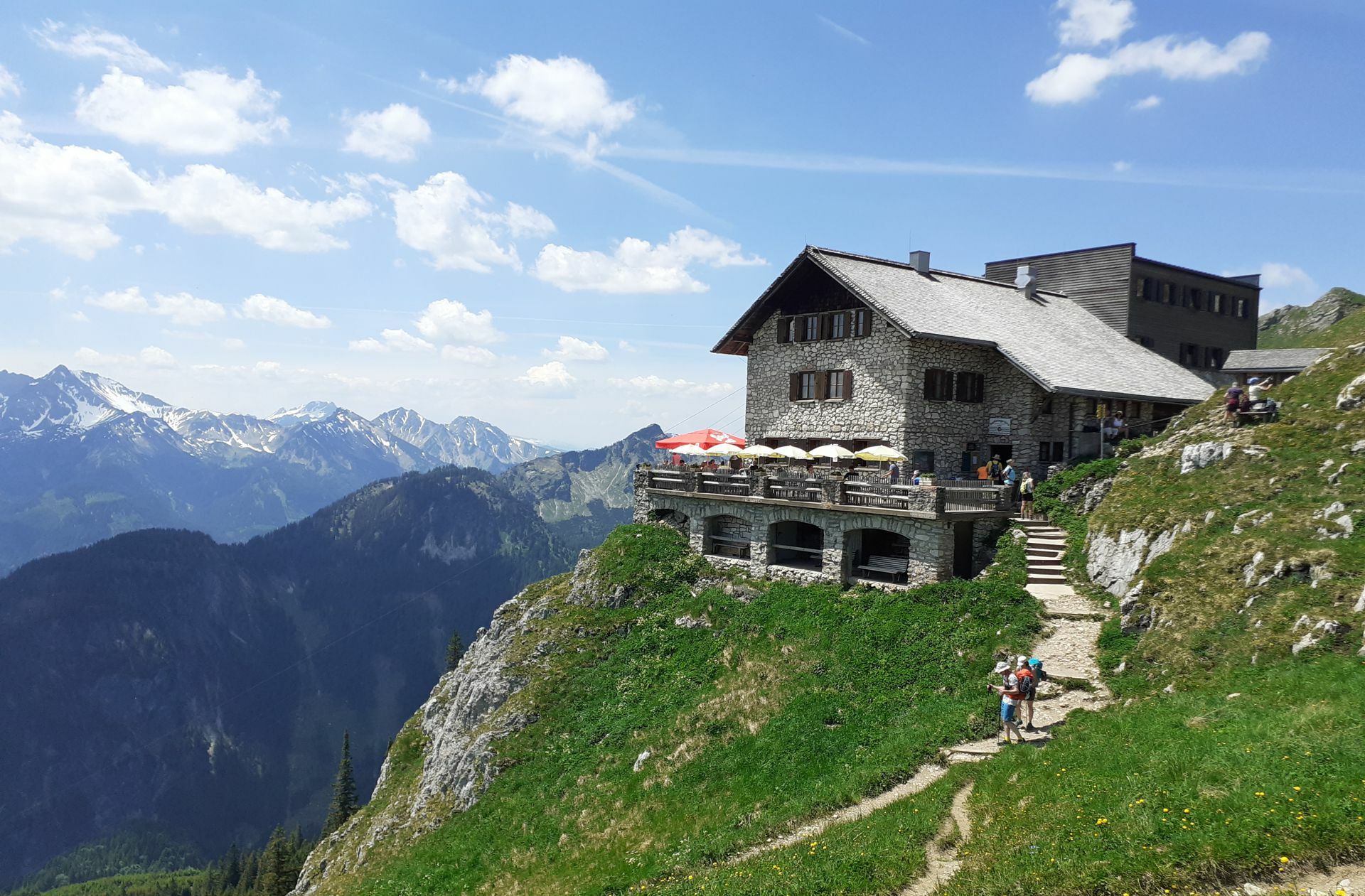 Die Bad Kissinger Hütte: Die Bad Kissinger Hütte liegt am Fuße des Aggensteins und ist über das Tannheimer Tal oder die Reichenbachklamm bei Steinach zu erreichen. Wer oben ankommt, darf sich auf Linsenbolognese, Linseneintopf oder einen veganen Schokoladenkuchen freuen. Zur Brotzeit gibt es einen Karotten-Walnuss Aufstrich oder Hummus. Kakao und Kaffee oder das Müsli am Morgen können mit Hafermilch bestellt werden. Eine schöne Wanderung zur Bad Kissinger Hütte ist der Tannheimer Höhenweg. Ausgangspunkt dieser mittelschwierigen, vierstündigen Tour ist die Talstation der Bergbahnen in Grän. Von der Bergstation geht es über die Sebenalm zur Bad Kissinger Hütte auf 1788 Höhenmeter.